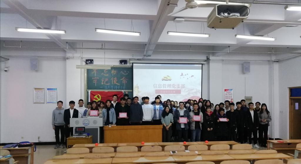 为在“不忘初心、牢记使命”主题教育中进一步做好“开门抓教育”,促进党团共建,taptap体育官网入口信息管理党支部于2019年11月14日在逸夫楼B303教室举办“不忘初心,牢记使命”主题教育知识竞赛总决赛。信息管理党支部成员及120余名同学观看本次比赛。
