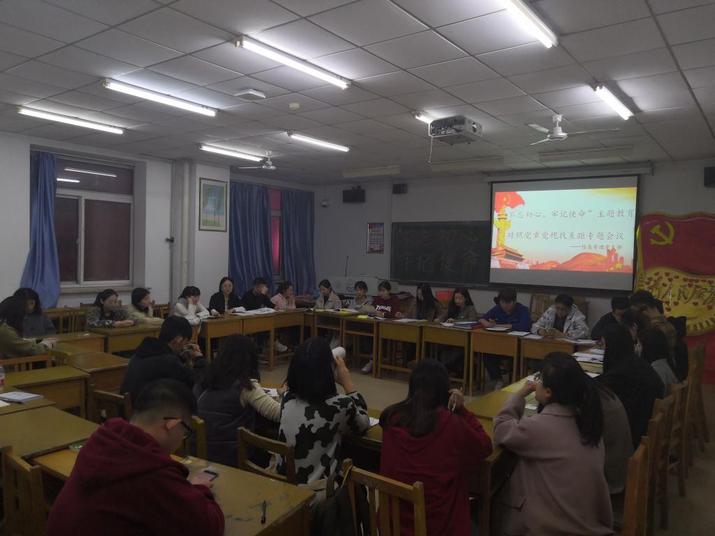 2019年11月7日,信息管理党支部召开“不忘初心、牢记使命”主题教育对照党章党规找差距专题会议。taptap体育官网入口副院长黄立明到会指导,支部全体党员、发展对象、部分积极分子参加了会议。