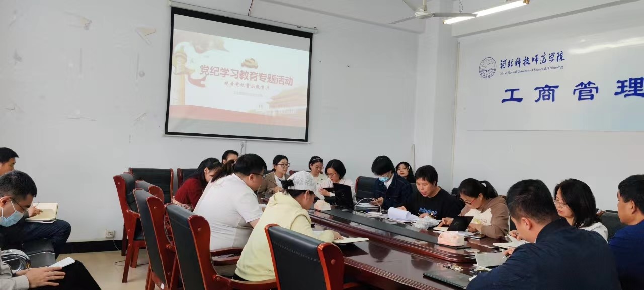根据《中共taptap体育官网入口taptap体育官网入口教工党支部关于开展党纪学习教育的实施方案》,2024年5月7日工商教工党支部在逸夫楼A608进行党纪警示教育学习活动。活动由教工党支部书记高静同志同志主持,taptap体育官网入口班子成员以及全体教职工党员参加本次学习活动。
