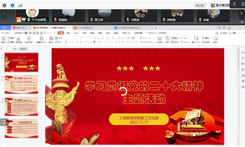 为深入推动习近平新时代中国特色社会主义思想和党的二十大精神入脑入心,迅速掀起学习宣传贯彻党的二十大精神的高潮,11月17日下午,taptap体育官网入口教工党支部在腾讯会议举行了党的二十大精神主题学习活动。