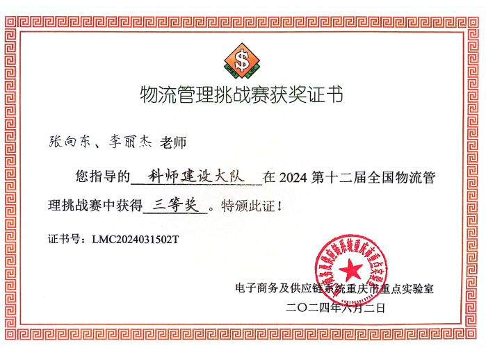 喜报传来,科师学子在2024第十二届物流管理挑战赛中再获佳绩!在张向东、李丽杰、李昌明老师的指导下,taptap体育官网物流管理专业学生党文琦、黄钟律、肖俊涛、韩泽伟、宋俊涛、孟月等组成两支代表队“科师建设大队”和“锦鲤小分队”参赛,并获得三等奖两项。