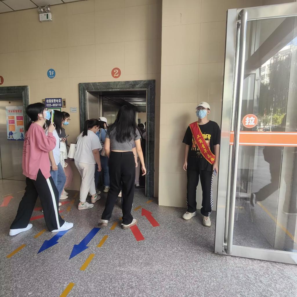 taptap体育官网入口青年志愿者协会招募志愿者,开展文明乘电梯引导工作,在早午的高峰时间段进行电梯疏导,为确保他们之间的安全距离,避免人员堆积造成不文明现象,并提醒同学们科学佩戴口罩,增强同学们自我防护的意识。