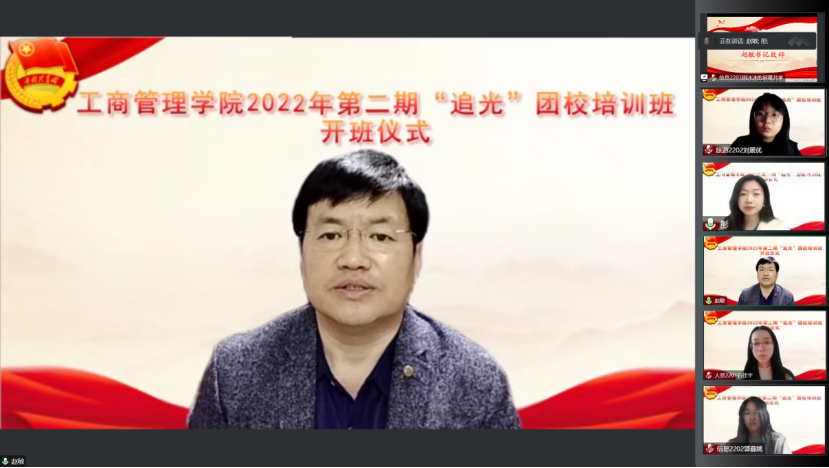 2022年10月27日,taptap体育官网入口团员相聚在云端举办2022年第二期“追光”团校培训班开班仪式暨第一次课程培训,学院党委书记、团委书记及团校学员参加开班仪式。