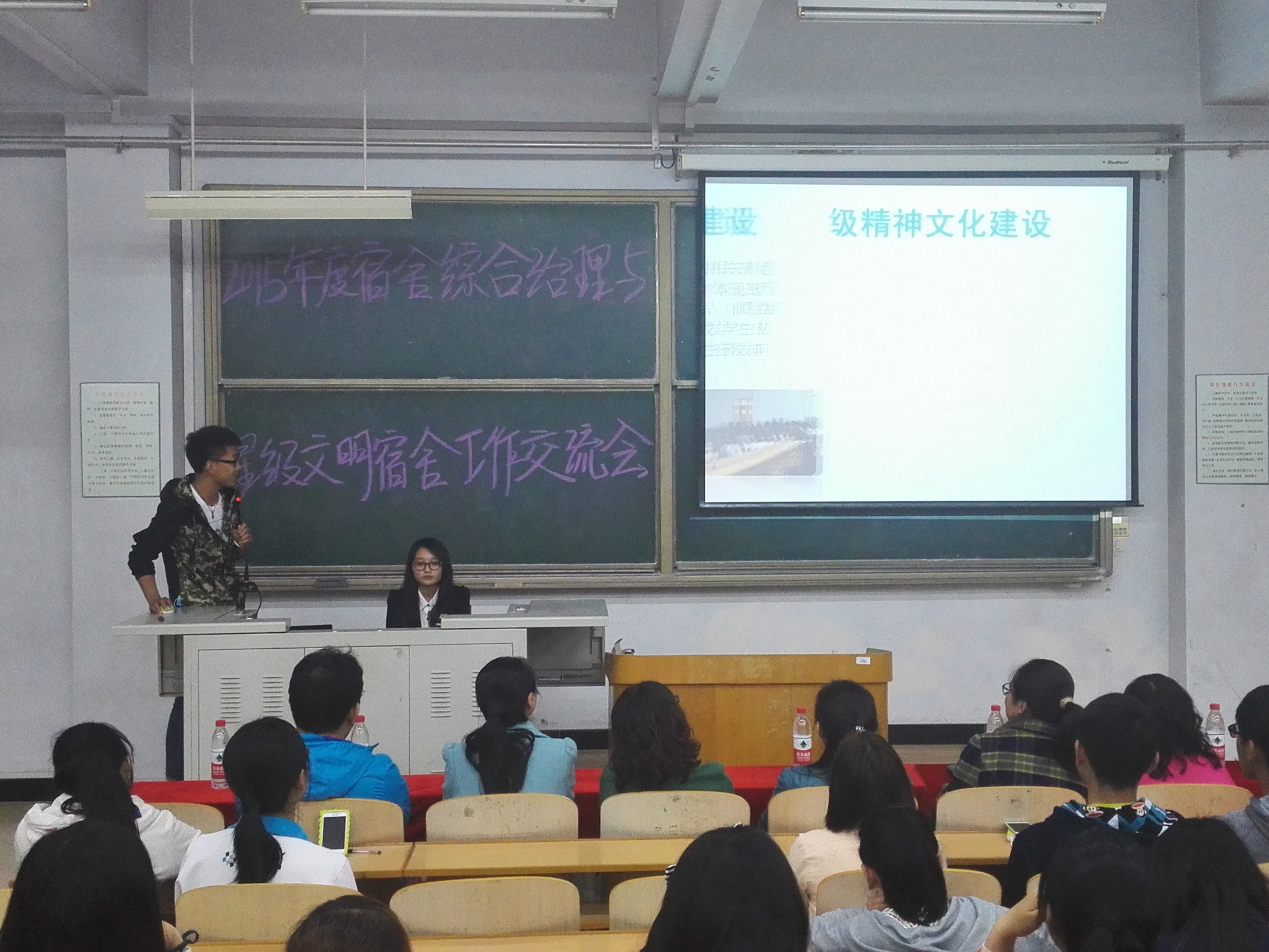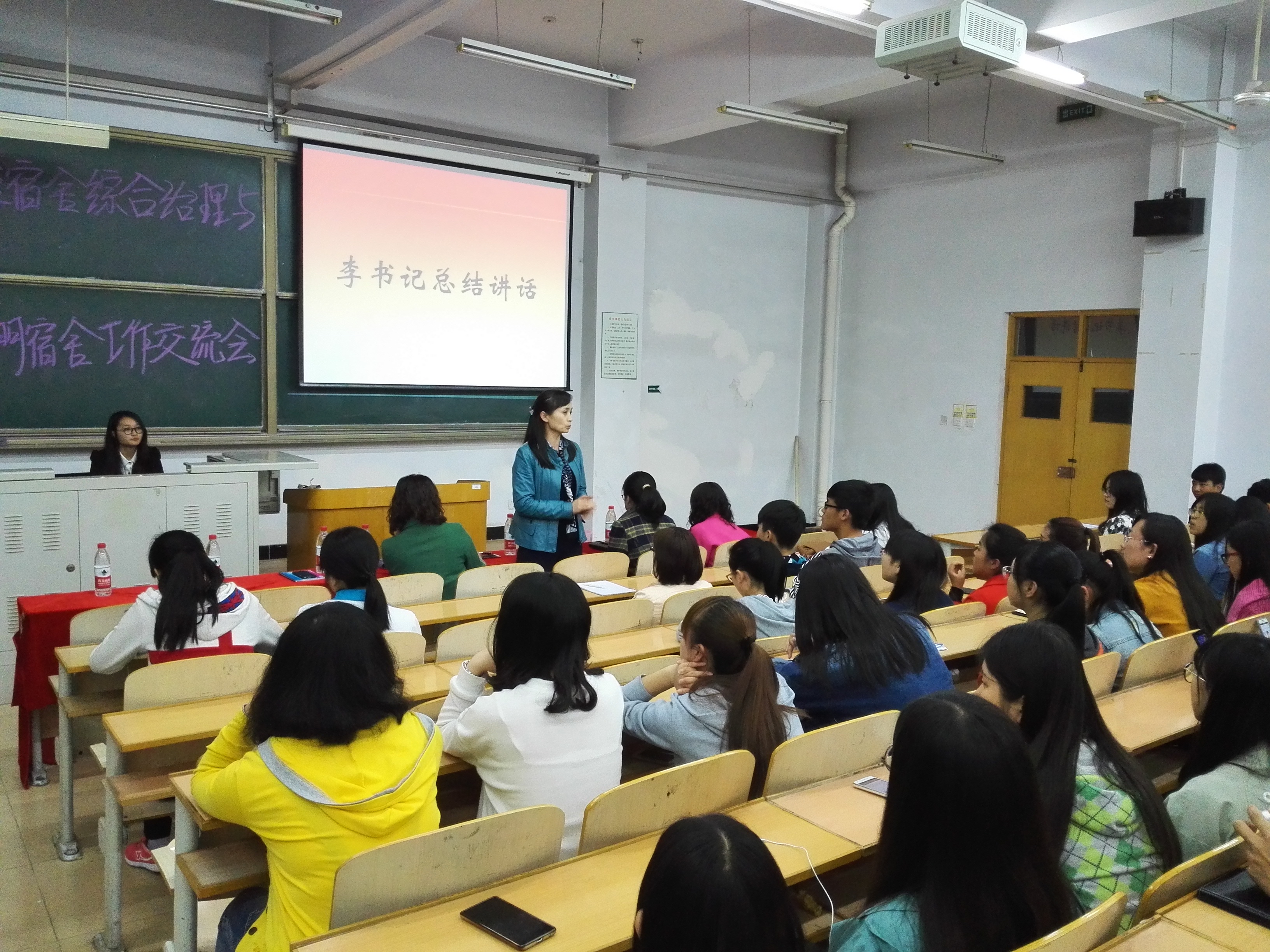 2016年4月22日晚7:00,taptap体育官网入口于B-501举办学生公寓综合治理与星级文明宿舍工作交流会。副书记、副院长李强华教授携学工办全体老师,taptap体育官网所有班级班长、生活委员及宿舍长出席了本次交流会。
