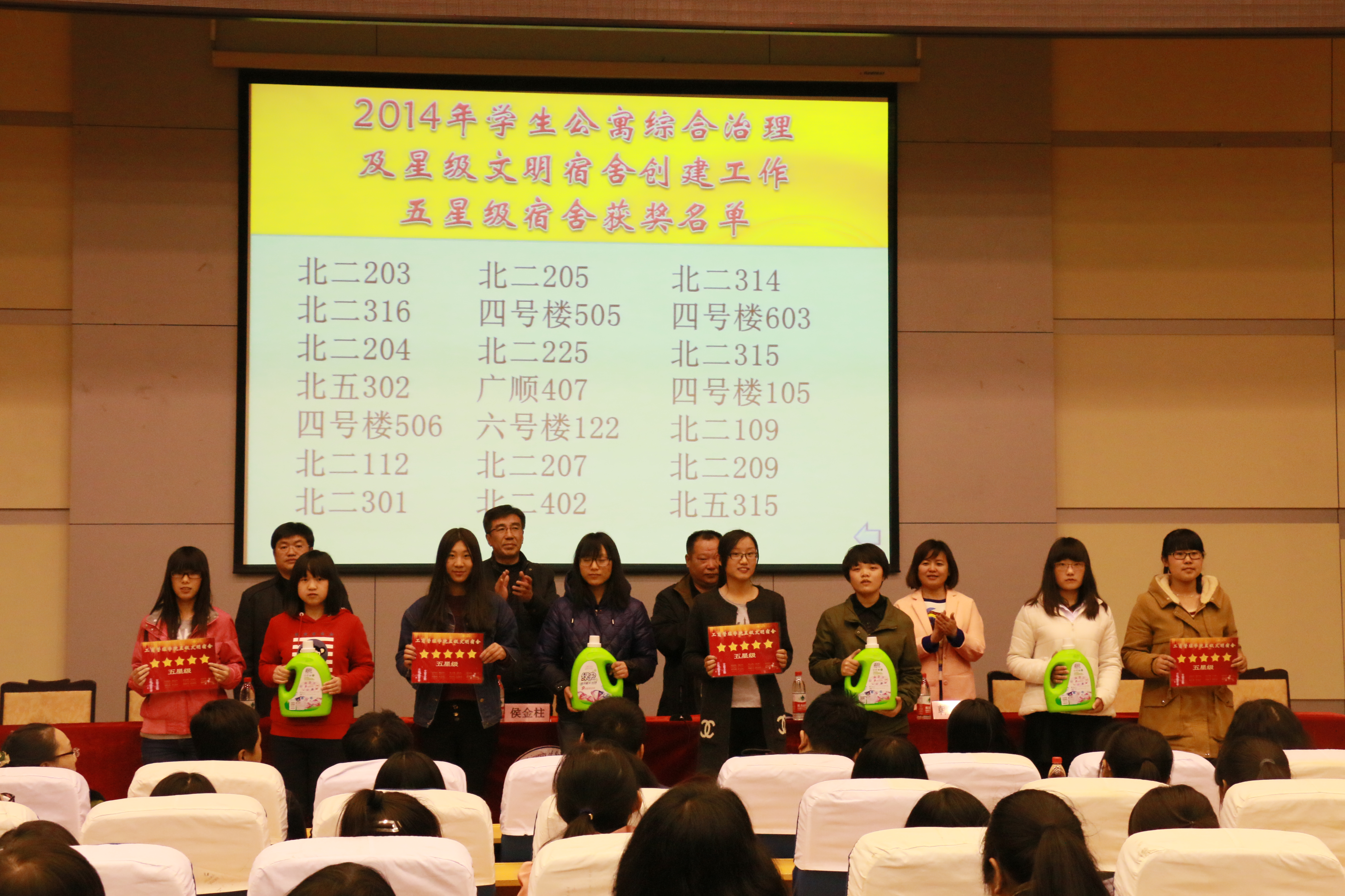 2015年4月7日晚七点,taptap体育官网入口在学术报告厅举行2014年学生公寓综合治理及星级文明宿舍创建工作表彰大会。出席本次大会的有学生处副处长徐树军,taptap体育官网入口党委书记侯金柱,党委副书记、副院长赵敏,以及全体辅导员和班主任老师。