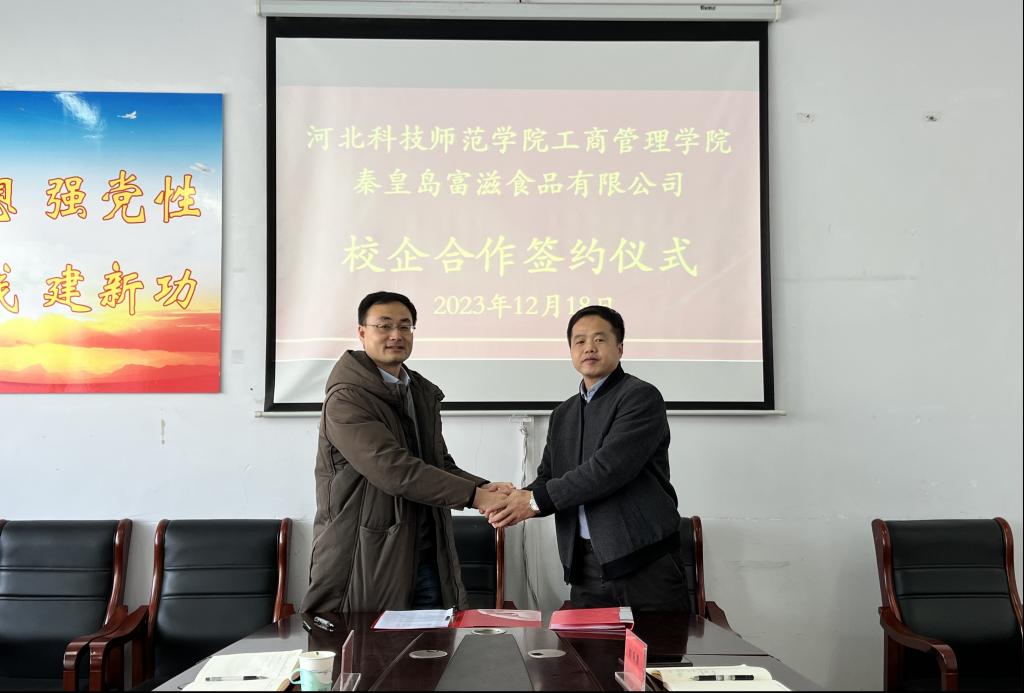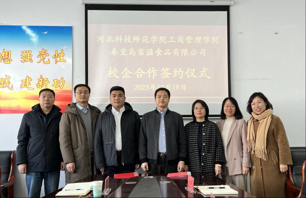 2023年12月18日上午,taptap体育官网入口taptap体育官网入口与秦皇岛富滋食品有限公司校企合作签约仪式在taptap体育官网入口会议室举行,taptap体育官网入口出席的人员有领导班子成员以及市场营销教学部专业老师代表,秦皇岛富滋食品有限公司出席的人员包括董事长、总经理及内销部经理。